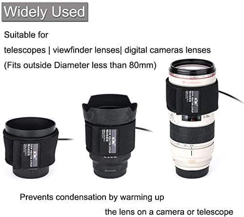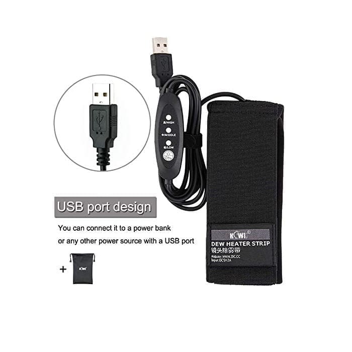 گرم کن های لنز راه حلی ساده و مقرون به صرفه هستند که هیچ عکاس نجومی یا عکاس حرفه ای نمی تواند بدون آن کار کند. آنها معمولاً به شکل یک نوار بالشتک هستند که می توان آن را دور یک لنز پیچیده و سپس از طریق USB به یک بسته برق یا منبع تغذیه دیگر وصل کرد. آنها اغلب چندین سطح افزایشی از تنظیمات دما را برای سازگاری با بیشتر محیطها ارائه میدهند.