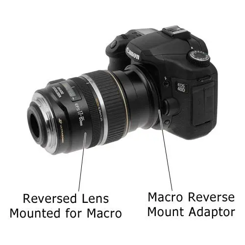 با استفاده از آداپتورهای رینگ معکوس لنز کی وی، میتوانید لنز خود را برعکس روی بدنه دوربین نصب کنید. این کار قابلیت بازتولید ماکرو را تا حد زیادی افزایش میدهد و بزرگنمایی چشمگیری ایجاد میکند.