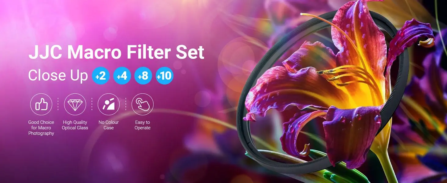 کیت فیلتر ماکروگرافی (کلوزآپ) جی جی سی به شما امکان میدهد بدون تعویض لنز، جلوههای ماکرو ایجاد کنید. این فیلترها بهراحتی روی لنز شما پیچ میشوند و فاصله فوکوس را کاهش میدهند؛ در نتیجه میتوانید از سوژههای بسیار نزدیک عکاسی کنید.
