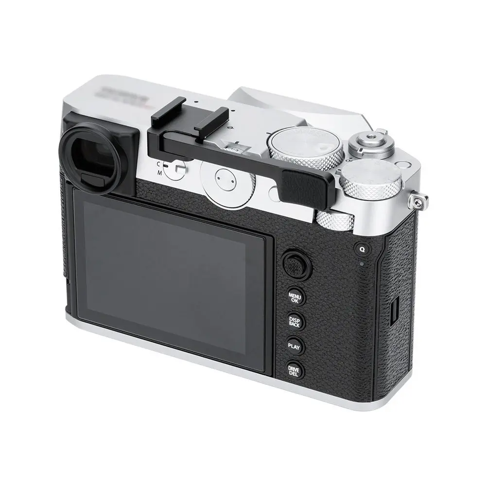 گریپ دستگیره انگشتی (تامز آپ) جی جی سی مدل TA-GFX100RF BLACK به طور ویژه برای دوربین FUJI GFX100RF طراحی شده تا راحتی در دست‌گیری و ثبات هنگام عکاسی را افزایش دهد. این گریپ از آلیاژ آلومینیوم باکیفیت ساخته شده و در عین استحکام، دوام بالایی دارد. طراحی ارگونومیک آن پشتیبانی محکم از انگشت شست در قسمت پشتی فراهم می‌کند و در هنگام عکاسی، گرفتن دوربین را ایمن‌تر می‌سازد. نصب آن بسیار ساده است؛ کافی است گریپ را داخل کفشک داغ دوربین قرار دهید و به همان راحتی نیز جدا می‌شود.